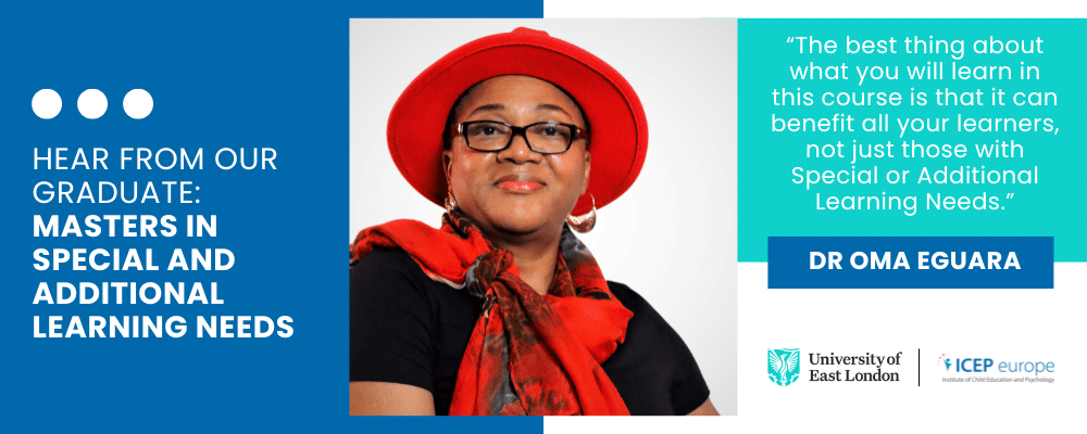 Dr Oma Eguara, a graduate of the Masters in Special and Additional Learning Needs, offered in partnership with the University of East London recently shared her insightful thoughts about how this Masters in SEN has helped her gain the knowledge and skills to support diverse learners across all education levels. Here’s what she says about her experience: